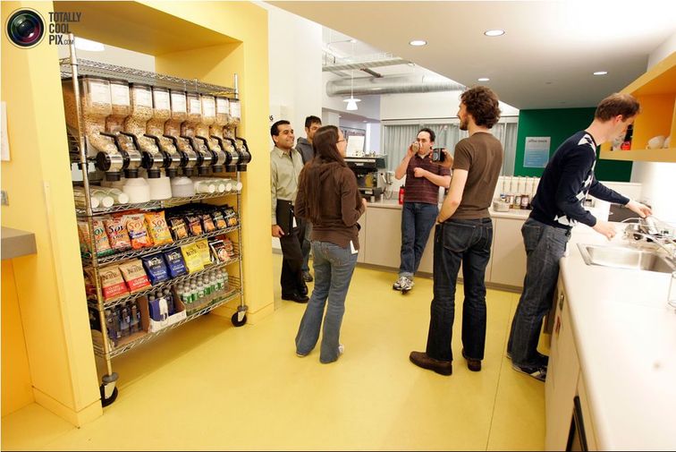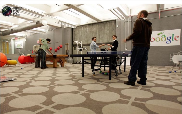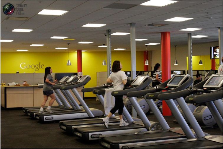 Na  sede do Google em Mountain View, CA funcionários são incentivados a  fazer uso de um ginásio gratuito no local, incluindo treinadores, pesos  livres e máquinas