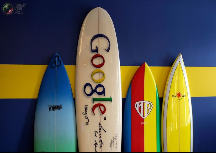 Surfboards  apoiados em uma parede no escritório do Google em Santa Monica,  Califórnia, 11 de outubro de 2010. O Google irá divulgar seus resultados  do terceiro trimestre na quinta-feira.